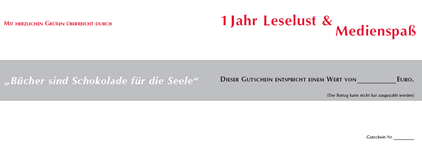 Verschenken Sie ein Jahr Leselust und Medienspaß! In der Stadtbücherei Obernburg erhalten Sie Gutscheine für Kinder, Erwachsene und Familien.